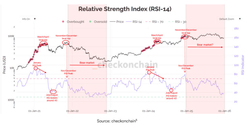 Price action suggests a new bull market commenced in 2026, with 2025’s drop from $126,000 to $81,000 potentially being a self-fulfilling prophecy due to cycle expectations, as RSI remained below overbought since late 2024, suggesting bitcoin already went through a bear market and we are commencing a new kind of cycle.